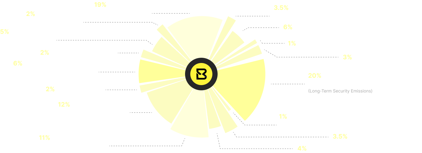 | Stakers & Validators (Long-Term Security Emissions) | 20% | 20,000,000,000 | ||