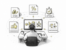 Validators managing stake, commission, uptime, and network participation